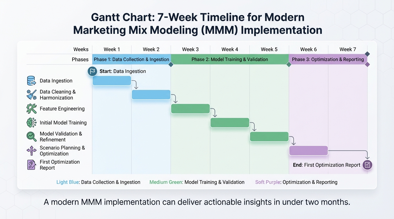 - Model Training (Weeks 4-5): The algorithm learns the relationships between your spend and your revenue.