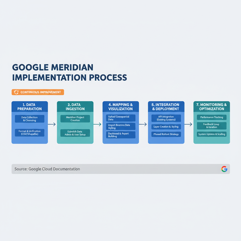 !Google Meridian implementation workflow with steps for data prep, modeling, and optimization