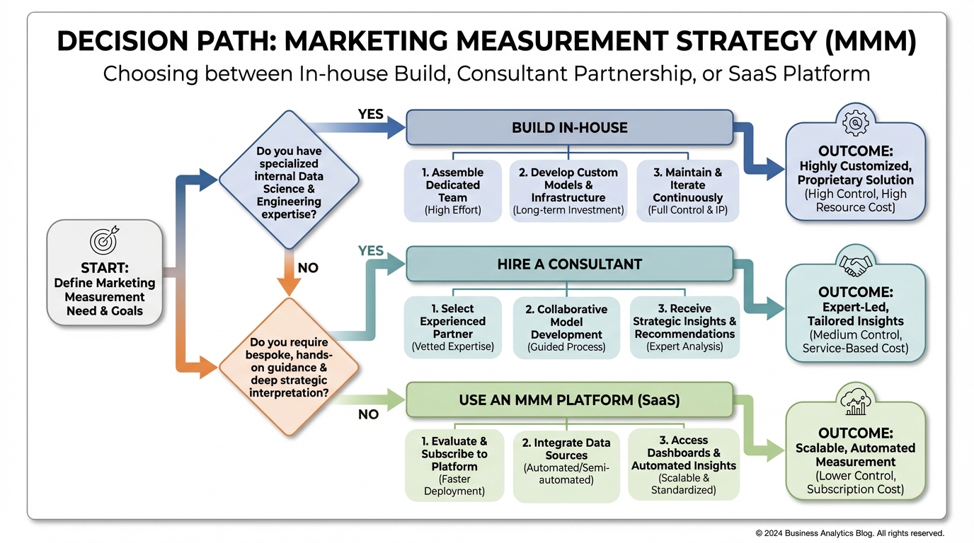 !Flowchart comparing In-House vs. Consultant vs. Hybrid MMM Platform options.*