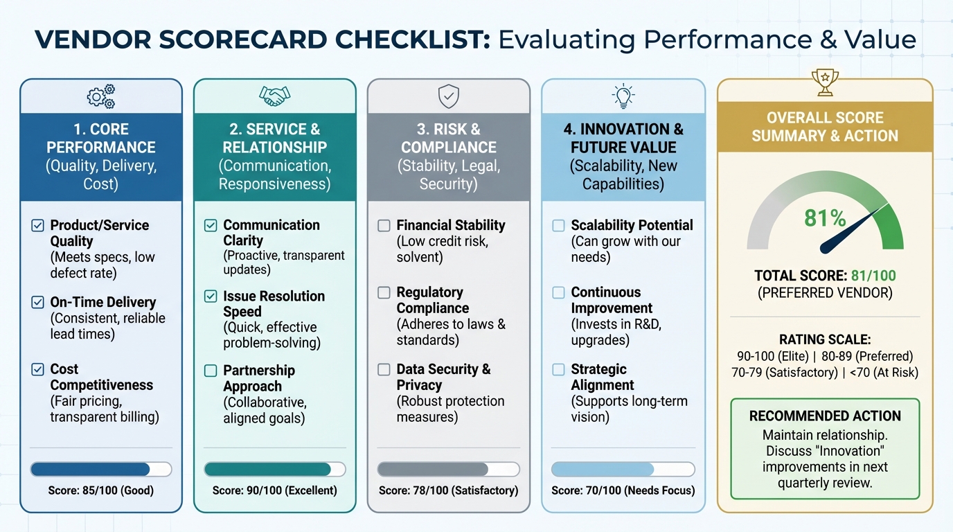 [IMAGE: Infographic of a "Vendor Scorecard" checklist.]