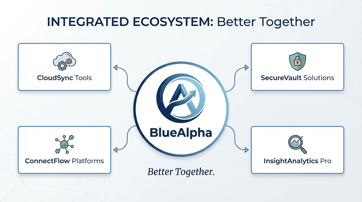 [IMAGE: A clean, minimalist summary graphic listing the logos of the 4 tools plus BlueAlpha with a 'Better Together' tagline.]