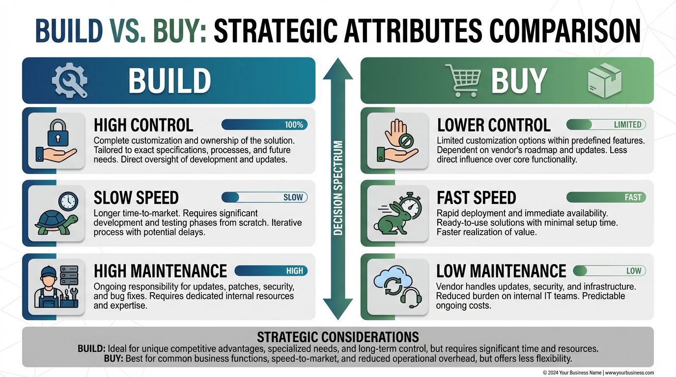 Every "build vs buy" decision comes down to a trade-off between control and speed.