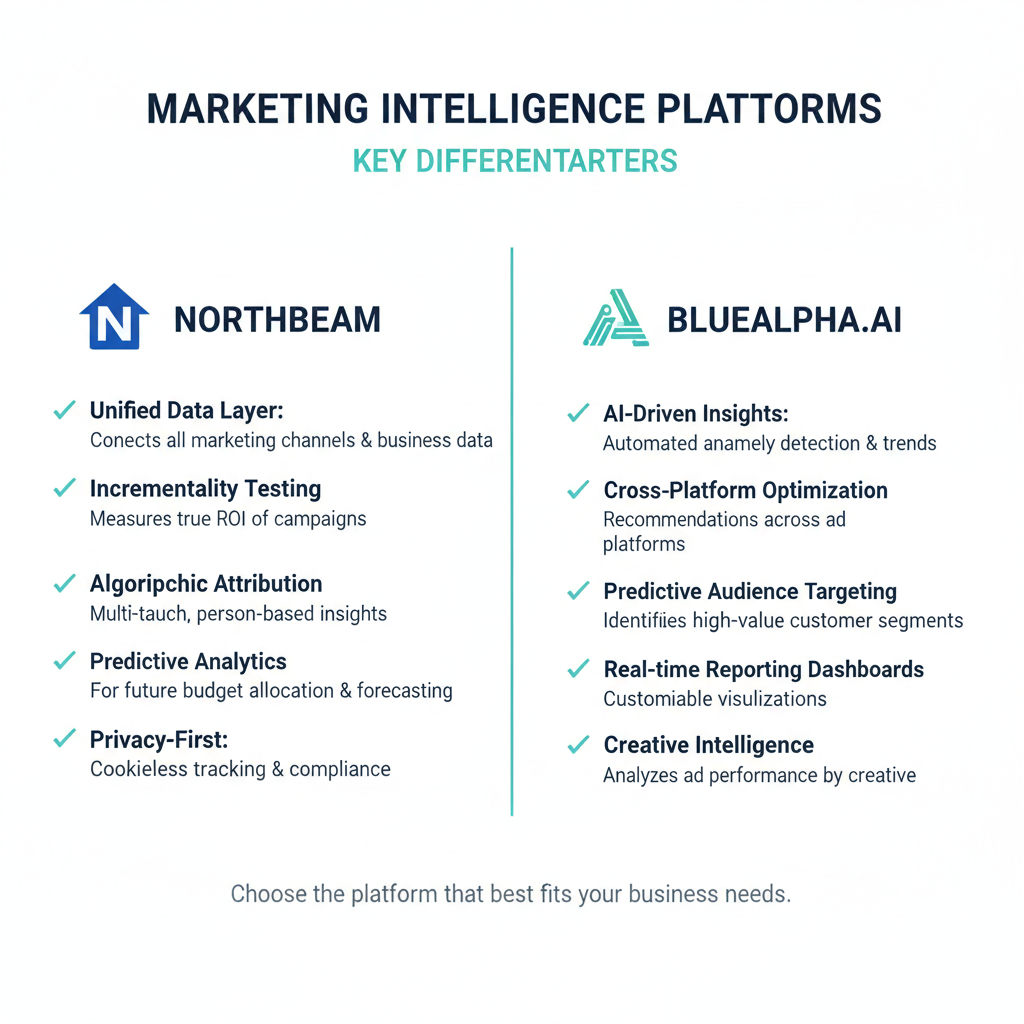 !Northbeam vs BlueAlpha.ai comparison showing key differences in marketing attribution approaches