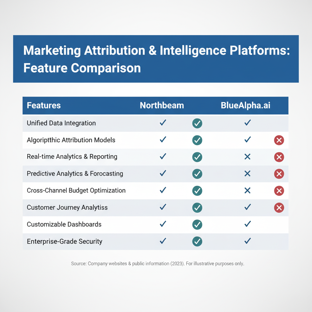 !Detailed feature comparison matrix for Northbeam vs BlueAlpha.ai marketing platforms