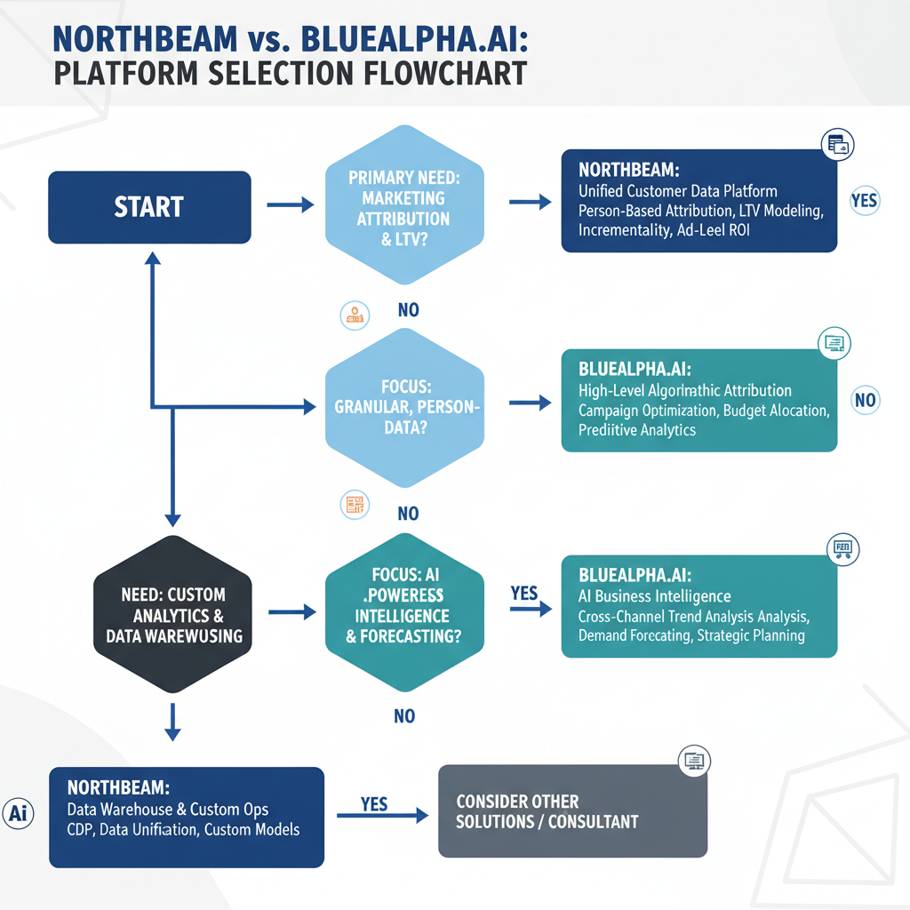 !Decision flowchart helping marketers choose between Northbeam and BlueAlpha.ai