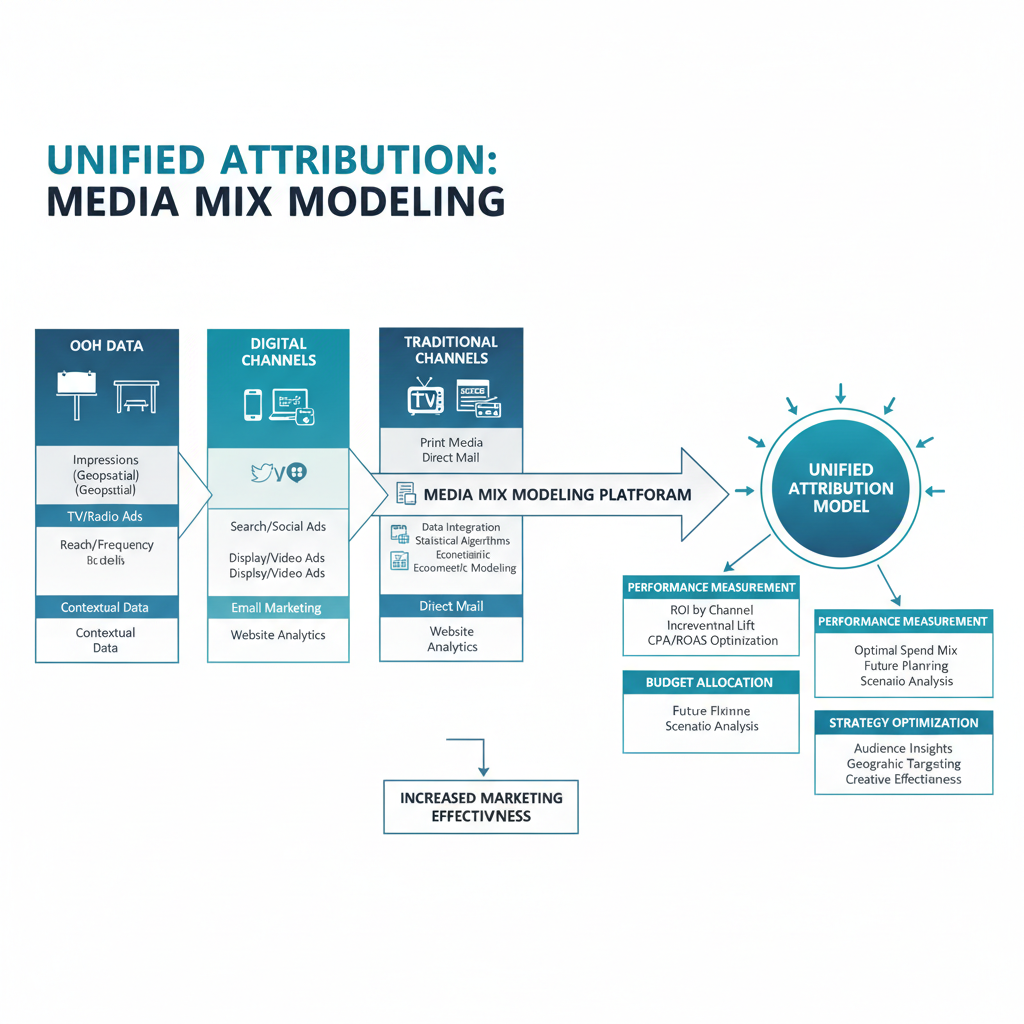 Cross-channel interactions: OOH often amplifies other channels. Someone sees your billboard, then recognizes your brand in social media feed. MMM captures these synergistic effects that single-channel attribution misses.