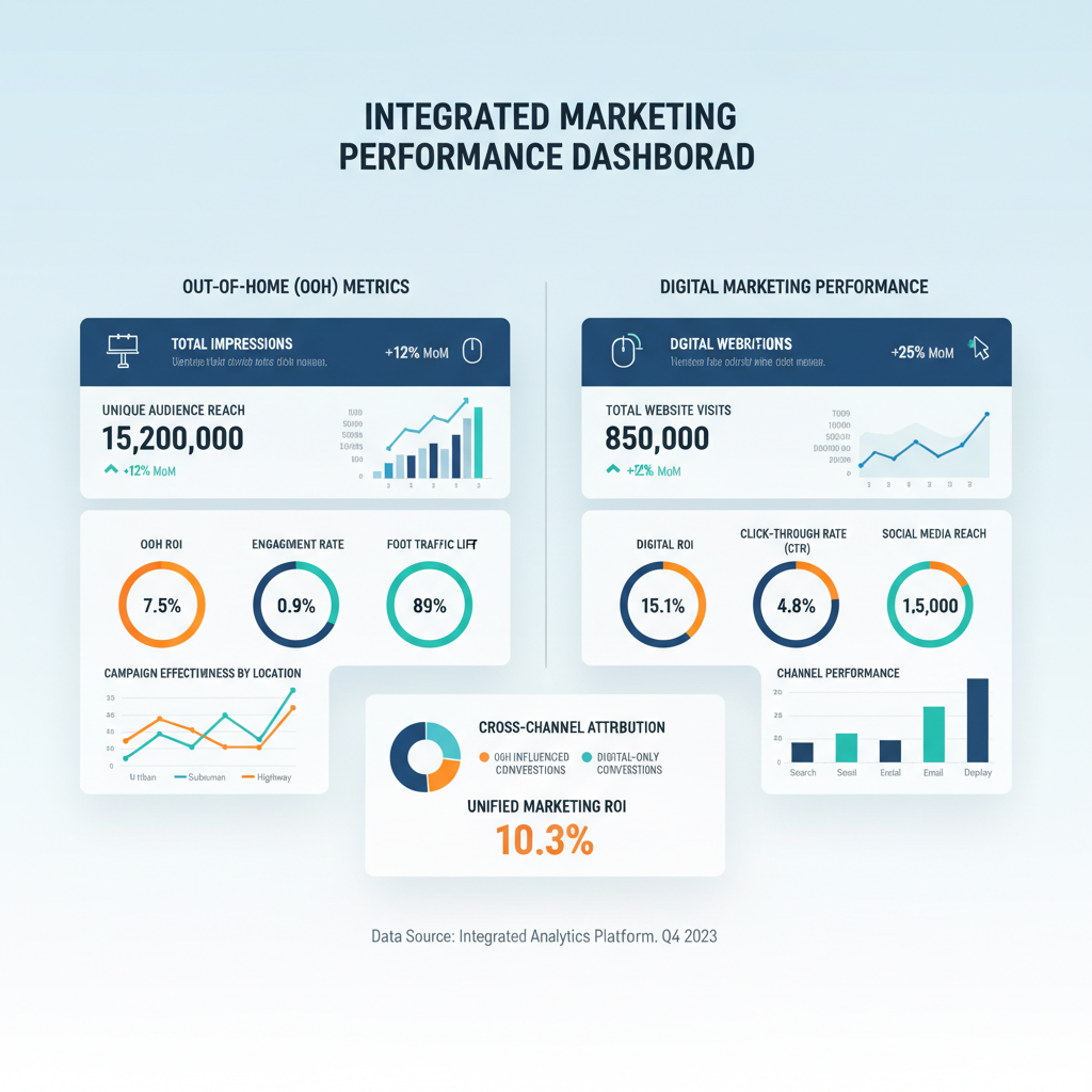 !Marketing dashboard integrating out of home advertising tracking with digital channel metrics