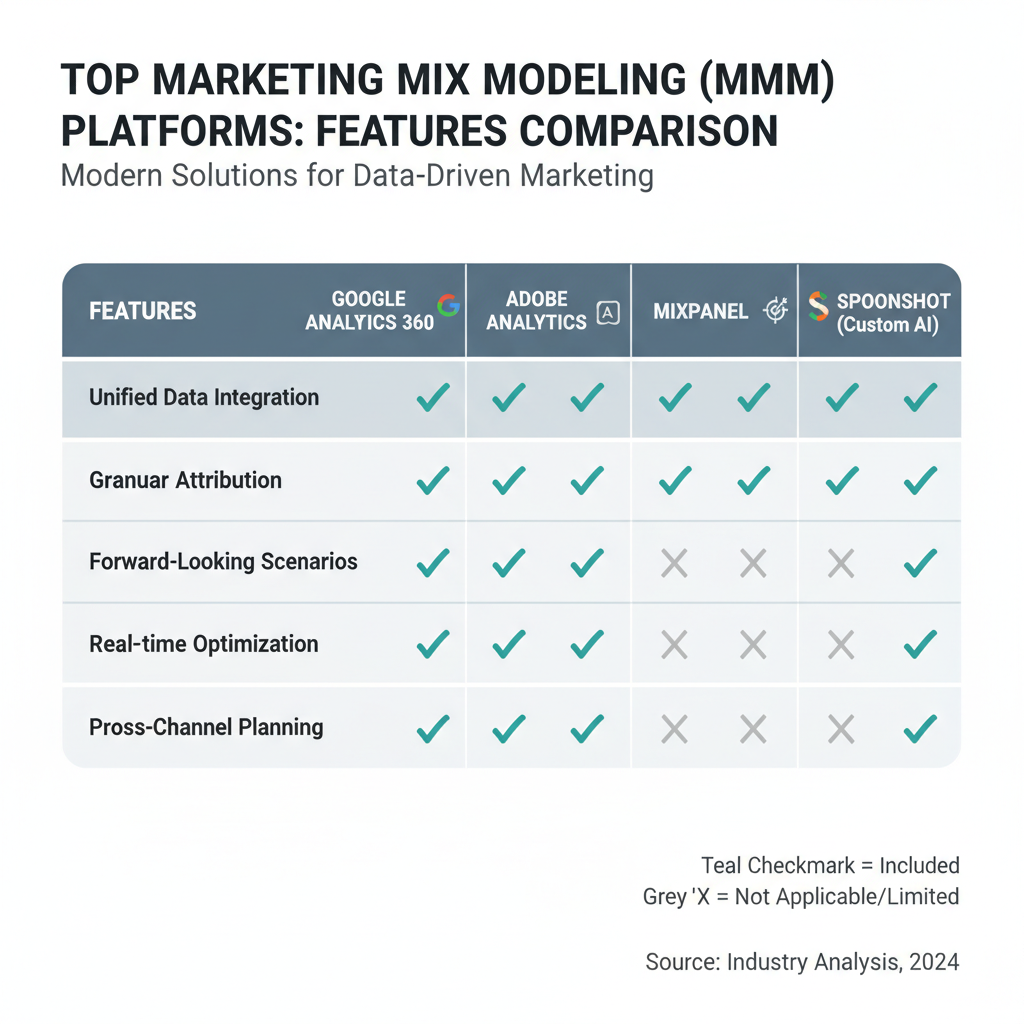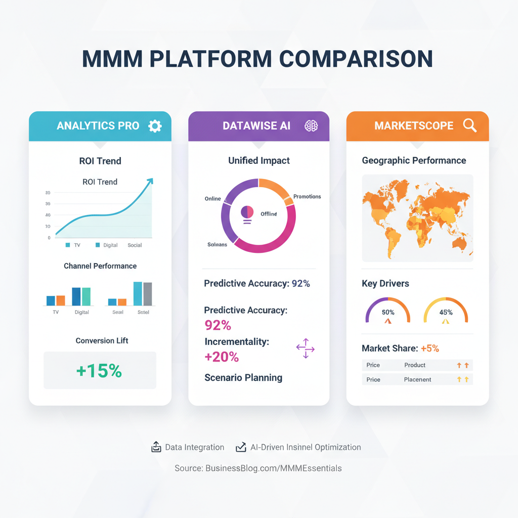 Modern MMM platforms offer varying capabilities from basic modeling to advanced incrementality testing