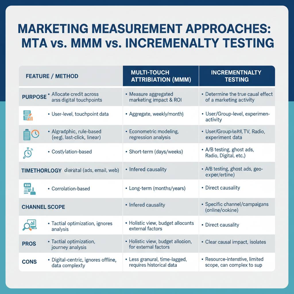 Neither is universally "better"—they answer different questions. Multi-touch attribution shows the customer journey at a granular level but struggles with accuracy due to tracking limitations and doesn't measure upper-funnel impact. MMM measures all channels including offline and provides true incrementality but lacks granular journey visibility. The best approach? Use both, with incrementality testing to calibrate attribution accuracy.
