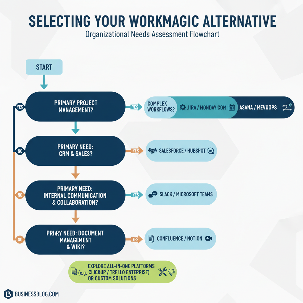 !Decision framework flowchart for choosing the right Workmagic alternative platform